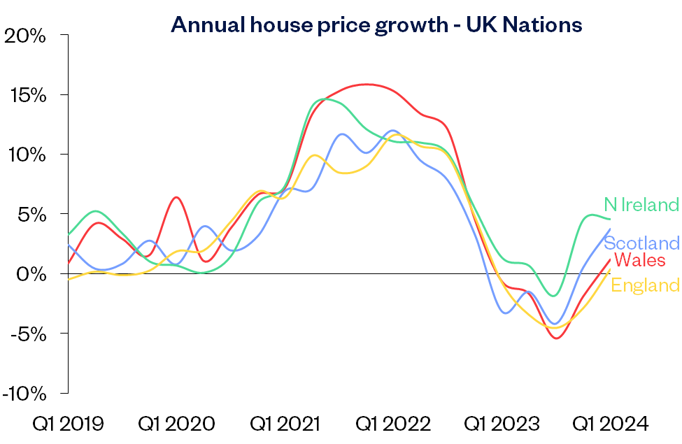 “Across England overall, prices were up 0.4% compared with Q1 2023, while Wales saw a 1.2% year-on-year rise. Meanwhile, Scotland saw annual price growth pick up to 3.7%.