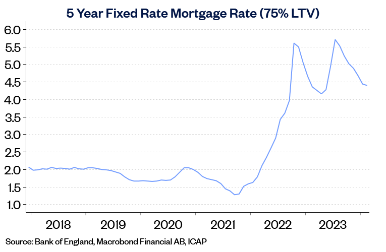 “Activity has picked up from the weak levels prevailing towards the end of 2023 but remains relatively subdued by historic standards. For example, the number of mortgages approved for house purchase in January was around 15% below pre-pandemic levels. This largely reflects the impact of higher interest rates on affordability. While mortgage rates are below the peaks seen in mid-2023, they remain well above the lows prevailing in the wake of the pandemic (as shown in the chart below).