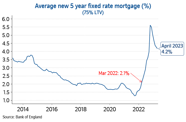 “If maintained, this is likely to exert renewed upward pressure on mortgage rates, which had been trending down after spiking in the wake of the mini-Budget in September last year (see chart below).