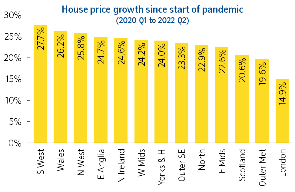 “Looking at house price growth since the onset of the pandemic, we see a similar pattern, with London also the weakest performing region. Since 2020 Q1, average house prices in the capital have increased by 14.9%, whilst all other regions, except the Outer Metropolitan, have seen at least a 20% uplift.