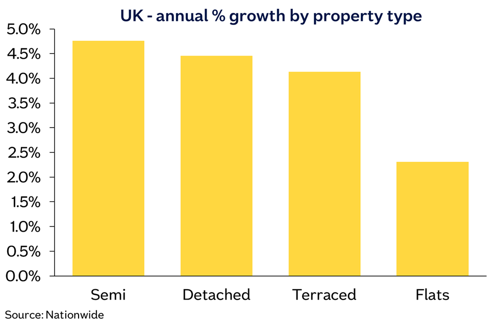 “Our most recent data by property type reveals that semi-detached houses have seen the biggest percentage rise in prices over the last 12 months, with average prices up 4.8% year on year.