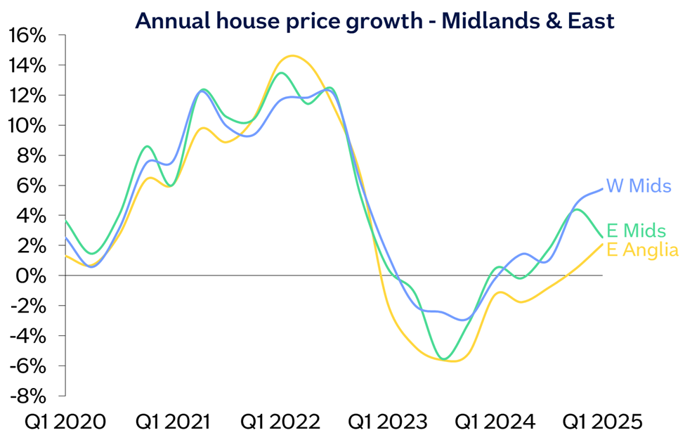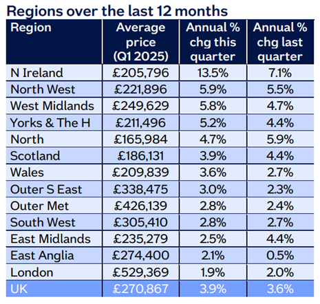 House price growth steady across most regions in first quarter of 2025