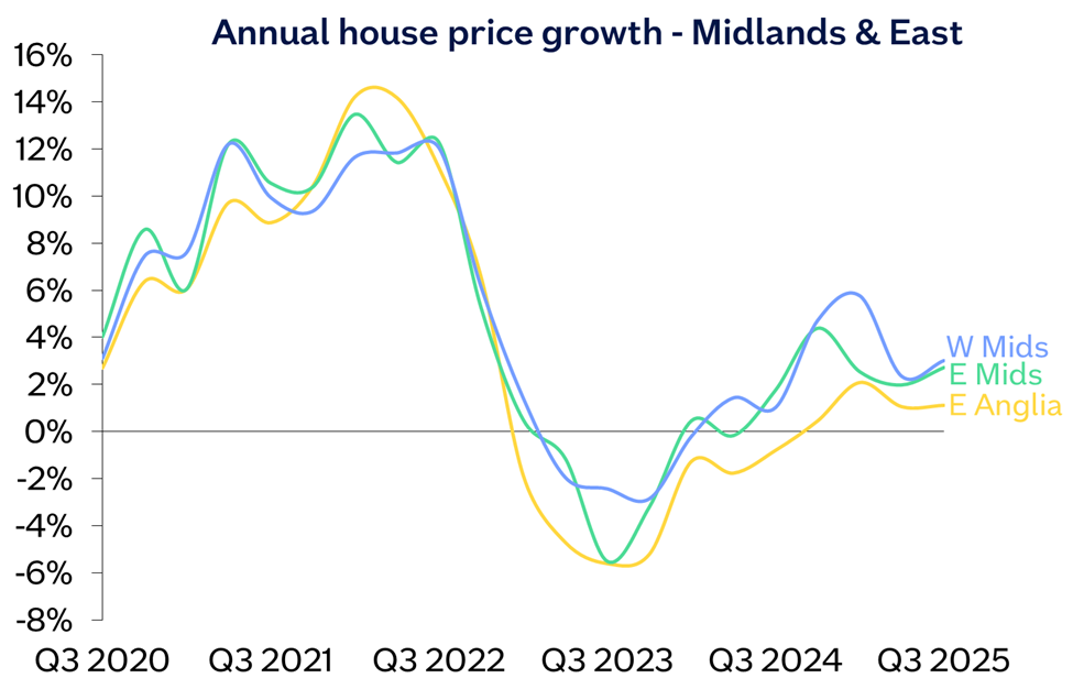 Most regions saw a slowing in house price growth in Q3 2025