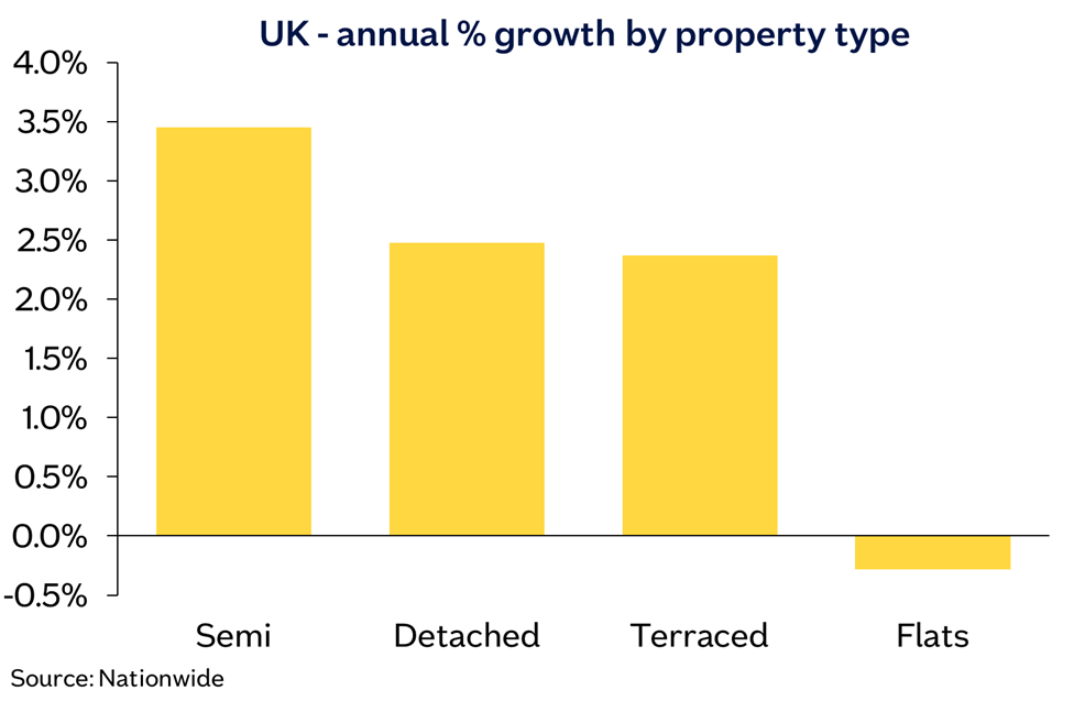 “Our most recent data by property type shows that semi-detached properties have seen the biggest percentage rise in prices over the last 12 months, with average prices up 3.4% year on year.