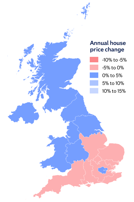 “Our regional house price indices are produced quarterly, with data for Q2 (the three months to June) showing a mixed picture, with some regions seeing a modest pick up in growth, but others still recording annual price declines (see full table on page 4).