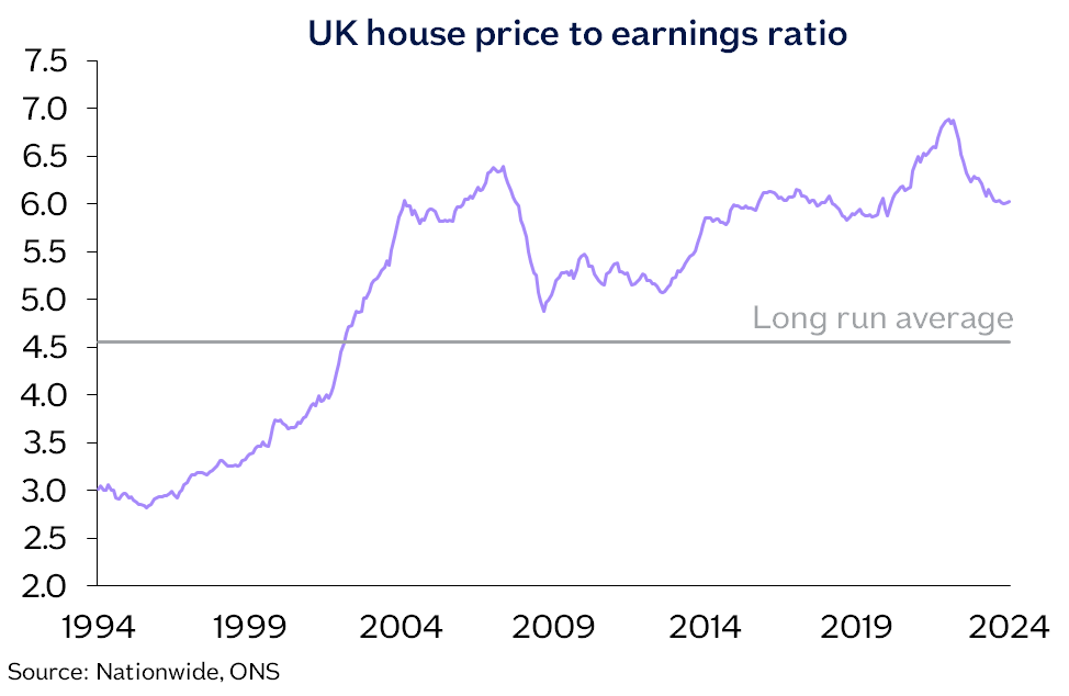 “As a result, housing affordability is still stretched. Today, a borrower earning the average UK income buying a typical first-time buyer property with a 20% deposit would have a monthly mortgage payment equivalent to 37% of take-home pay - well above the long run average of 30%.