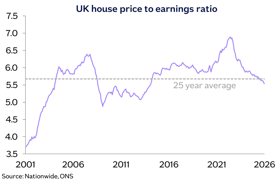 “For the second year running, London saw the largest improvement in affordability, reflecting relatively weak house price growth in 2025, solid earnings growth and lower interest rates. Nevertheless, the capital remains the least affordable region by a significant margin (see chart above).