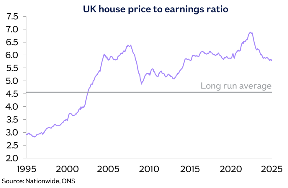 “The housing market continues to show resilience despite ongoing affordability pressures. As we highlighted in our recent affordability report, while there has been a modest improvement over the last year, affordability remains stretched by historic standards. A prospective buyer earning the average UK income and buying a typical first-time buyer property with a 20% deposit would have a monthly mortgage payment equivalent to 36% of their take-home pay – well above the long-run average of 30%.