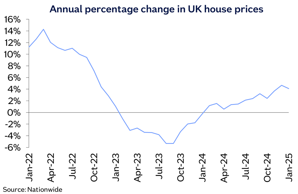 “The price of a typical UK home rose by 4.1% year on year in January, a modest slowing in the annual pace of growth compared with December. House prices increased by 0.1% month on month, after taking account of seasonal effects.