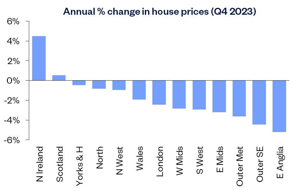 “Northern Ireland was the best performer in 2023, with prices up 4.5% over the year. Scotland also recorded a modest annual increase of 0.5% last year.