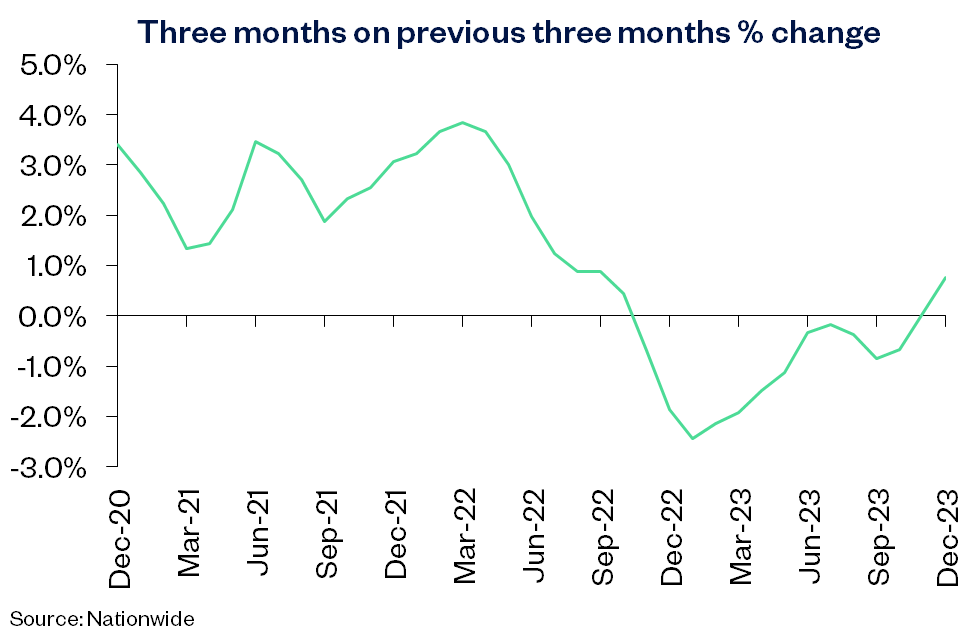 “However, in our most recent data, we have seen a convergence in the annual rate of price growth for different property types. During 2023, the price of semi-detached properties held up best, recording a 1.8% year-on-year fall. Meanwhile, flats and terraced houses both saw a 2.1% annual decline, while detached properties were the weakest performing with prices down 2.7% over the year.”