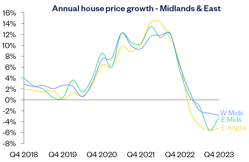 “East Anglia was the weakest performing region, with prices down 5.2% year on year. Across England overall, prices were down 2.9% compared with Q4 2022, while Wales saw a 1.9% decline.