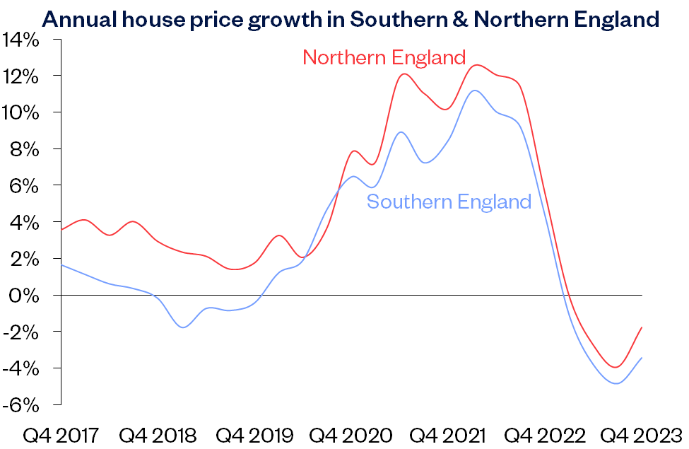 “Meanwhile southern England (South West, Outer South East, Outer Metropolitan, London and East Anglia) saw a 3.4% year-on-year fall. London was once again the best performing southern region with a 2.4% annual decline.