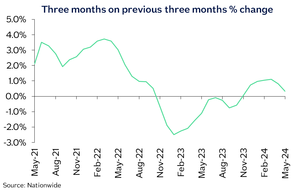 “UK house prices increased by 0.4% in May, after taking account of seasonal effects. This resulted in a slight pickup in the annual rate of house price growth to 1.3% in April, from 0.6% the previous month.