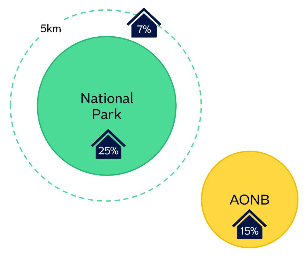 “This is a similar premium to 2022, when we last carried out this research. There also continues to be evidence of a ‘fringe benefit’ for properties located close to National Parks. Those within 5km (around 3 miles) of a National Park command a 7% premium compared with those outside of this range.