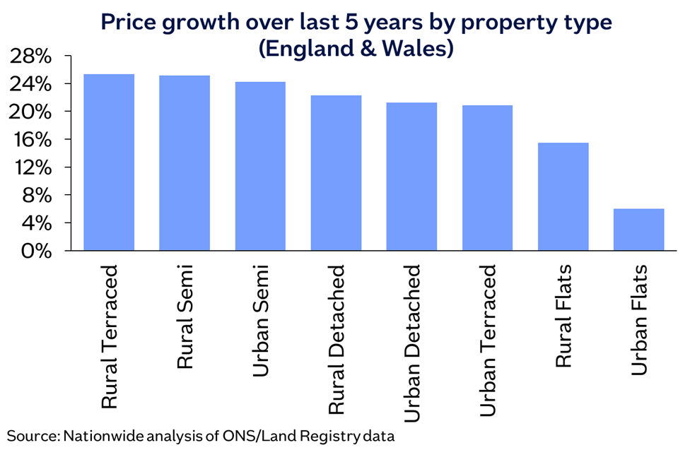 Rural semi-detached properties have seen strongest price growth over last five years
