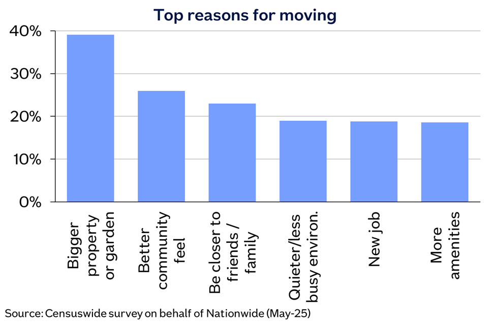 “Our survey data shows that a bigger property or garden was the top reason cited by those moving in the last five years, which may in part reflect the ‘race for space’ seen during the pandemic.