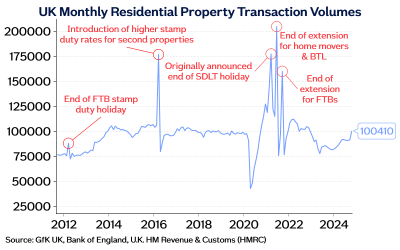 “Upcoming changes to stamp duty are likely to generate volatility, as buyers bring forward their purchases to avoid the additional tax. This will lead to a jump in transactions in the first three months of 2025 (especially in March) and a corresponding period of weakness in the following three to six months, as occurred in the wake of previous stamp duty changes. This will make it more difficult to discern the underlying strength of the market.