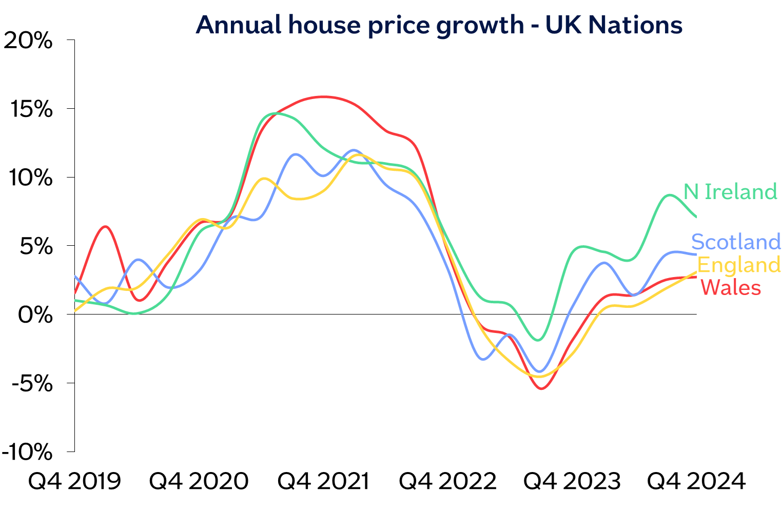 “Northern Ireland was the best performing area for the second year running, with prices up 7.1% over the year. Scotland recorded a 4.4% increase in 2024, whilst Wales saw a 2.7% year-on-year rise.