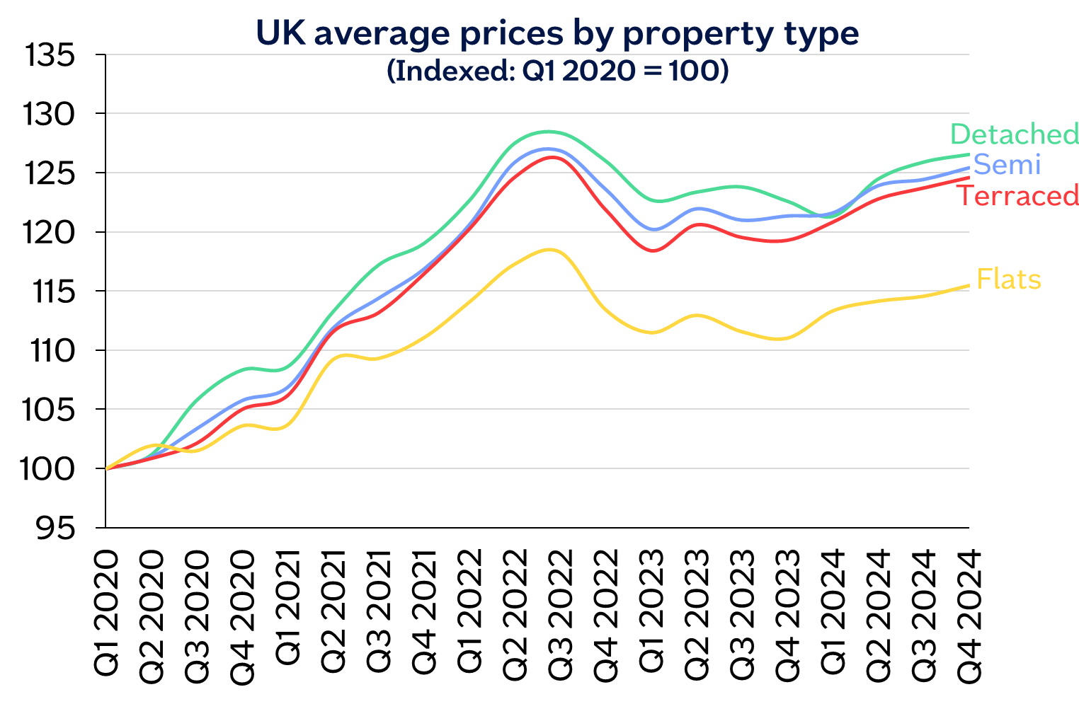“Our most recent data by property type reveals that terraced houses have seen the biggest percentage rise in prices over the last year, with average prices up 4.4% in 2024.