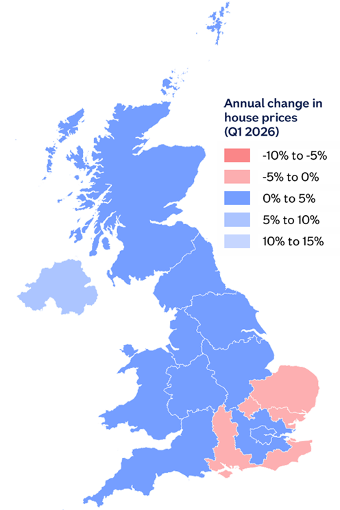 “Scotland saw a pickup in annual house price growth in Q1 to 3.0%, from 1.9% in Q4 2025. This was closely followed by Wales, where prices were up 2.7% year-on-year.