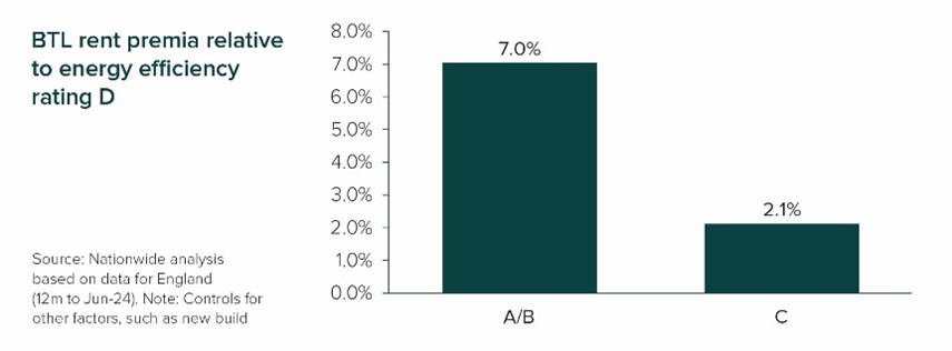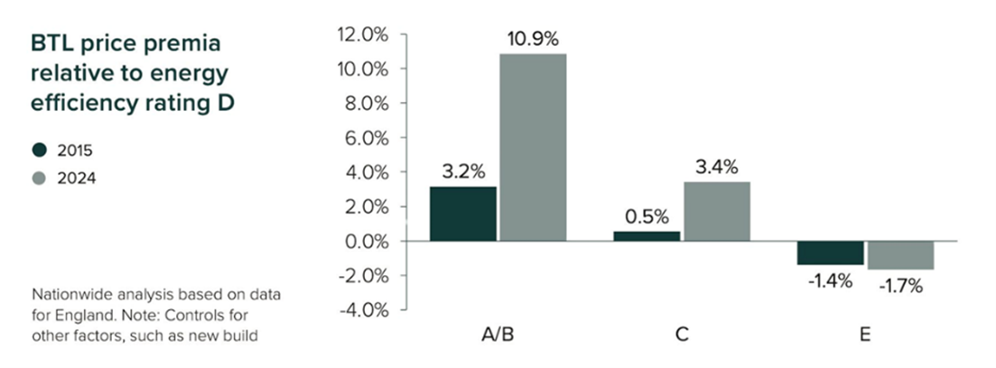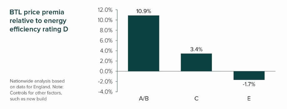 This price premium is significantly more compared to an owner-occupier property, where an A or B-rated house in England only attracts a 2.2% (£6,500) premium.